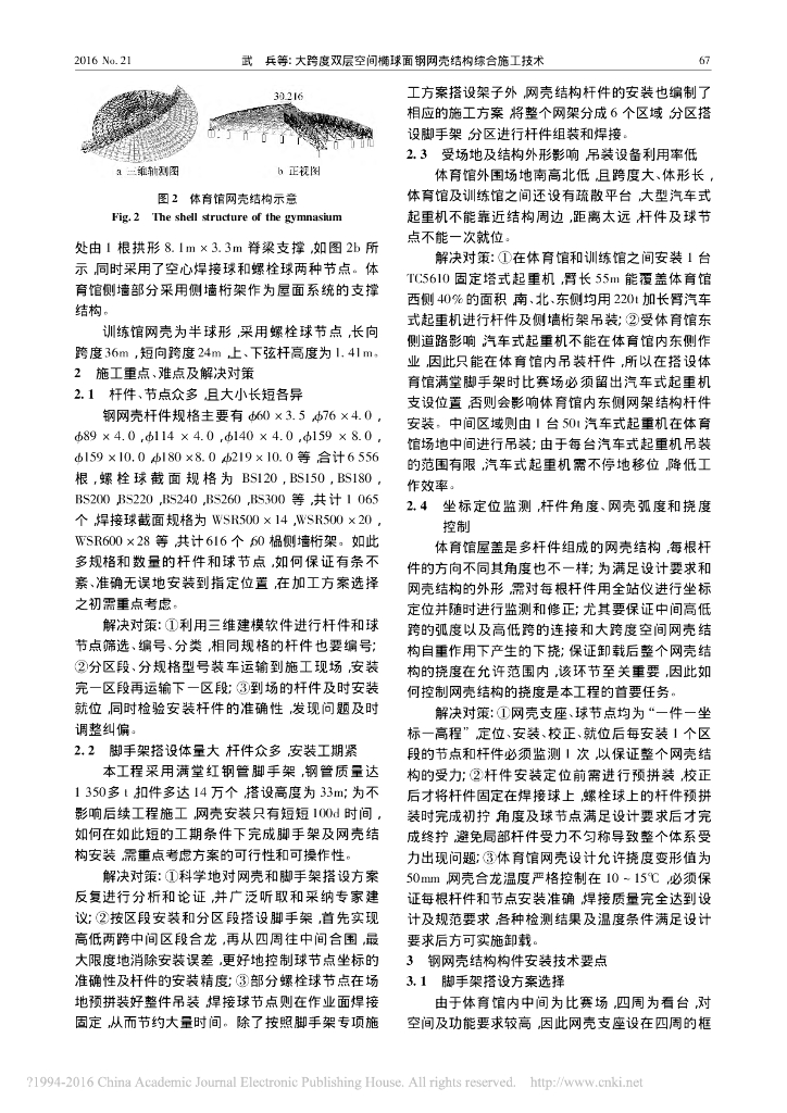 大跨双层空间椭球面钢网壳结构综合施工技术.pdf