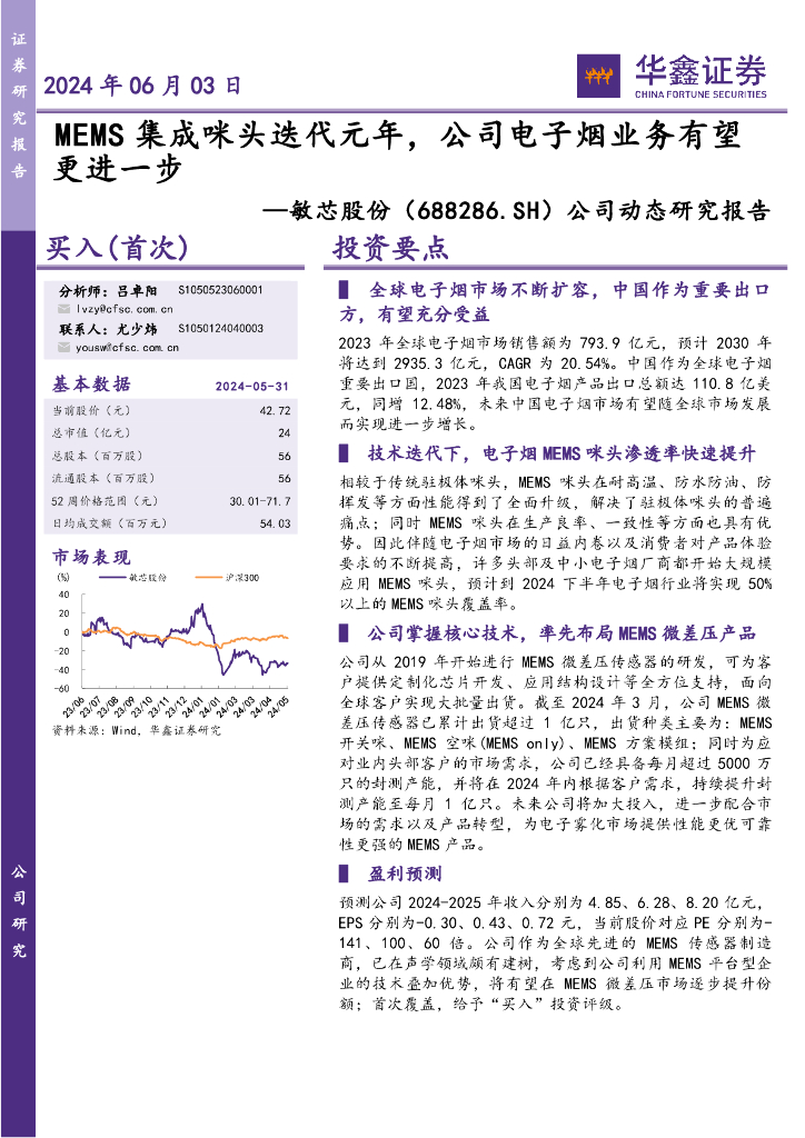 华鑫证券:敏芯股份(688286)-公司动态研究报告:MEMS集成咪头迭代元年,公司电子烟业务有望更进一步.pdf