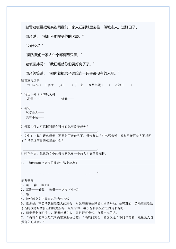 小学语文阅读理解各类精编习题大全(附答案)【234页】.doc