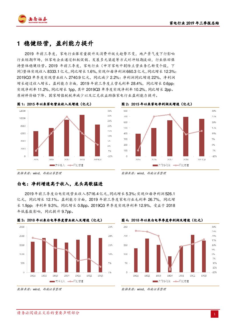 西南证券:家电行业2019年三季报总结:经营稳健盈利提升 估值切换+竣工回暖迎来投资窗口期.pdf