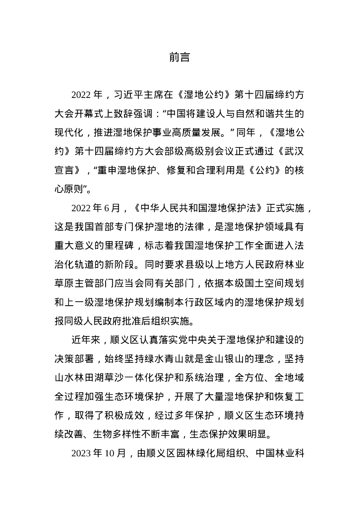 北京市顺义区湿地保护发展规划(2024-2035年)(征求意见稿).doc