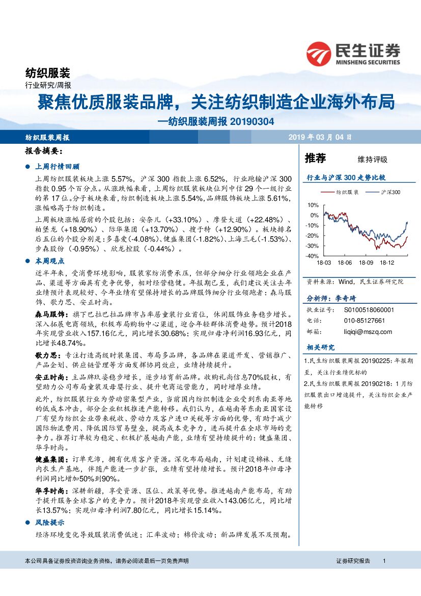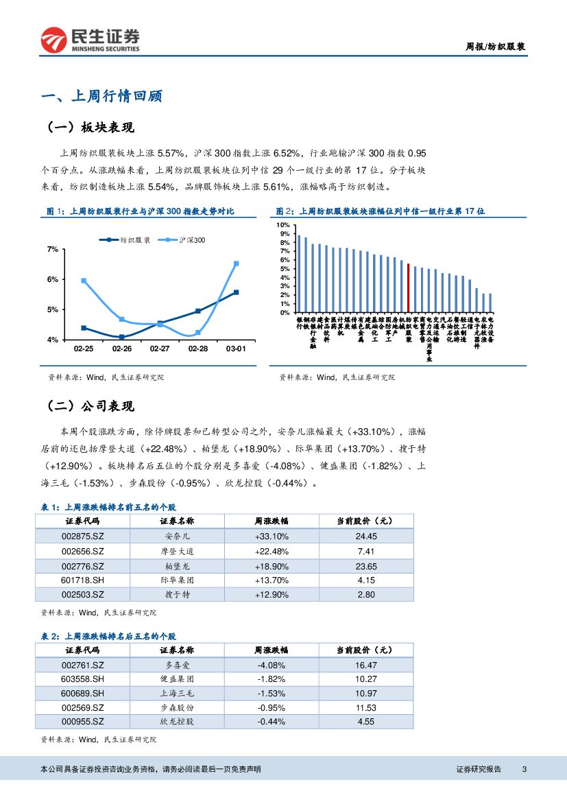 民生证券:纺织服装周报:聚焦优质服装品牌,关注纺织制造企业海外布局.pdf
