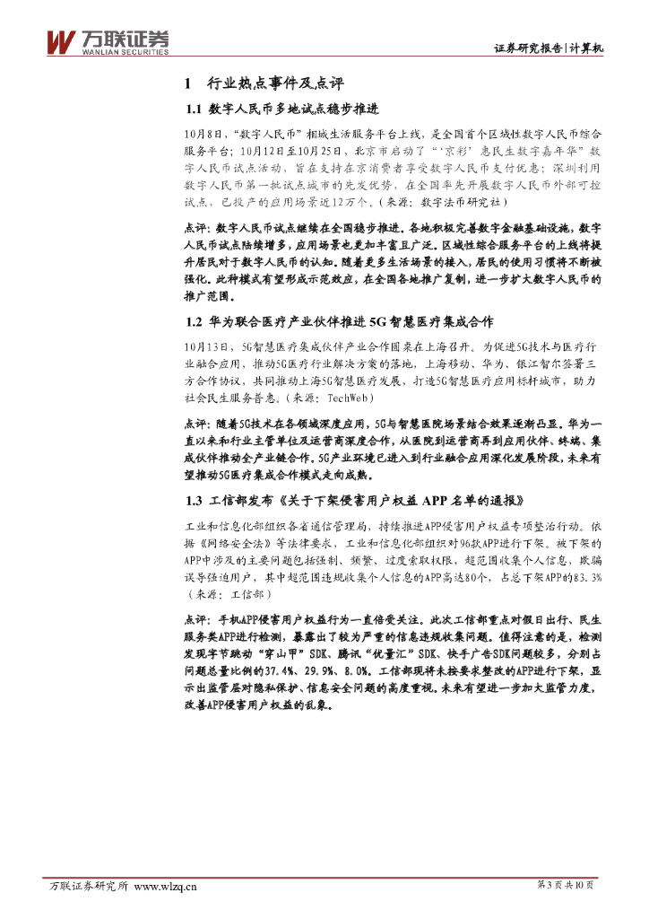 万联证券:计算机行业周观点:数字人民币多地试点稳步推进,工信部下架侵害用户权益APP.pdf
