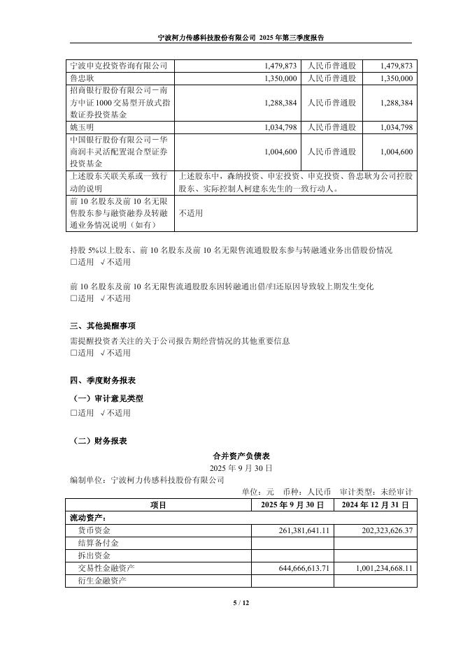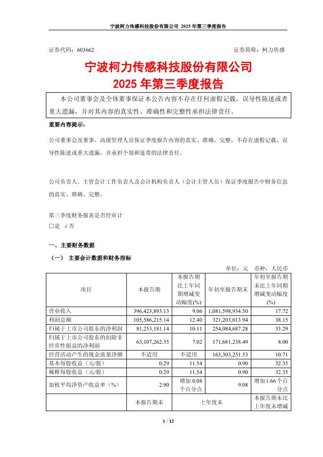 603662-柯力传感:柯力传感2025年第三季度报告.pdf