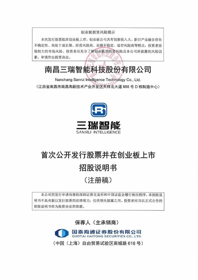 南昌三瑞智能科技股份有限公司创业板IPO上市招股说明书.pdf