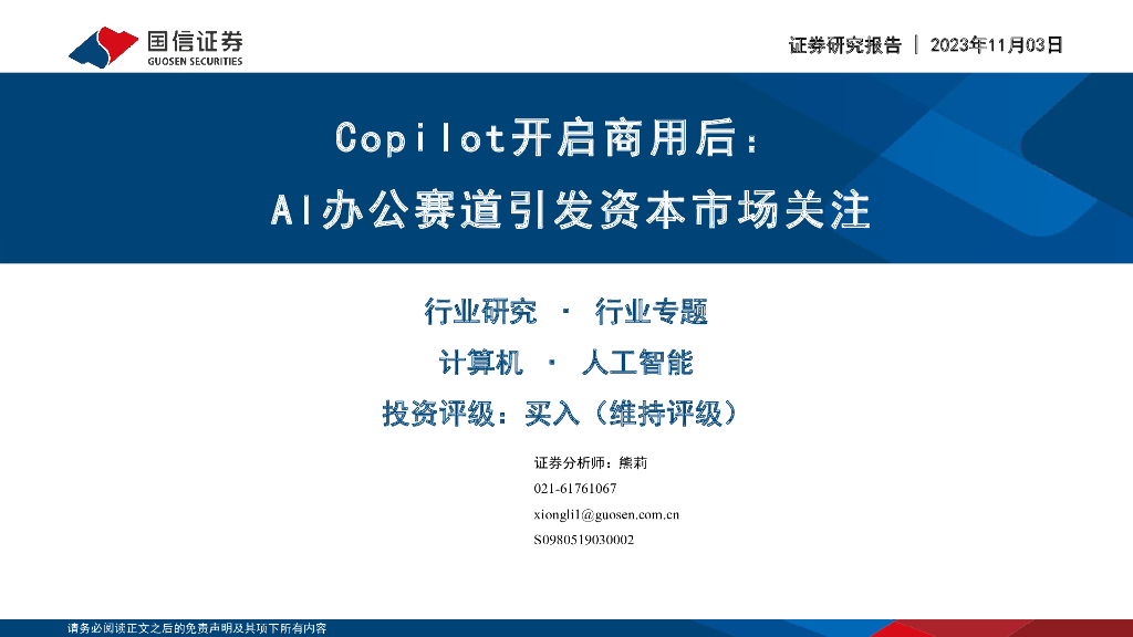 国信证券:Copilot开启商用后:AI办公赛道引发资本市场关注.pdf