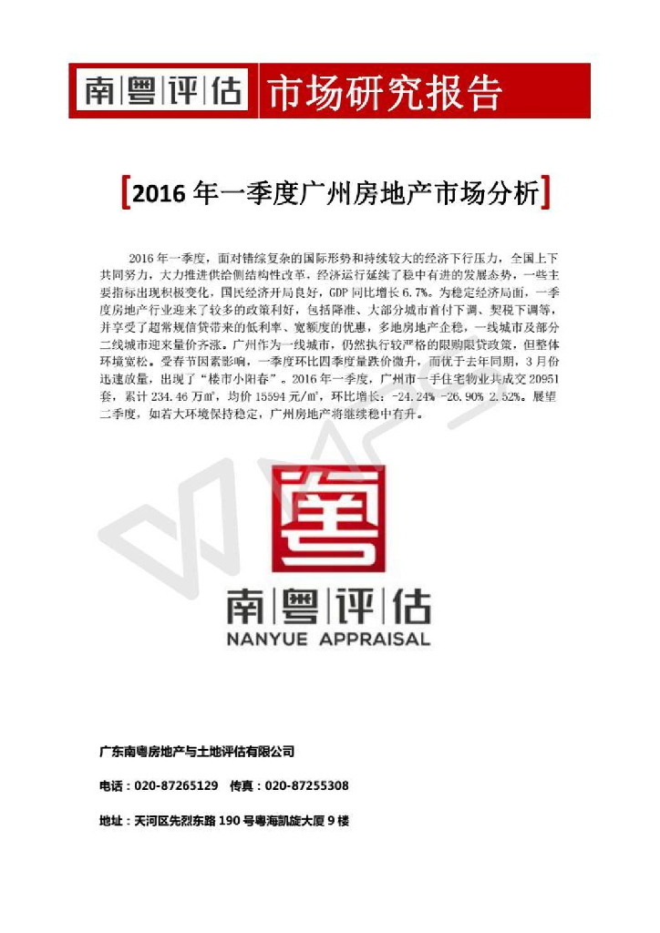 南粤评估:2016年一季度广州房地产市场分析报告.pdf