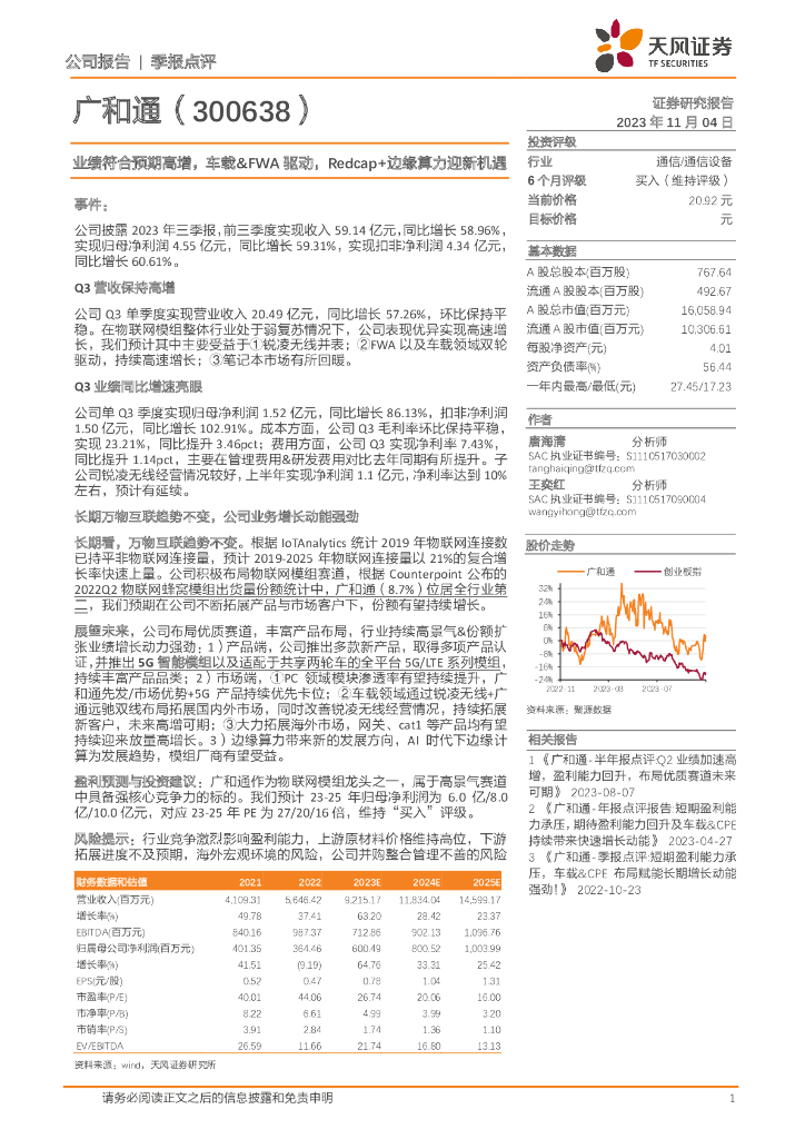 天风证券:广和通(300638)-业绩符合预期高增,车载&FWA驱动,Redcap+边缘算力迎新机遇.pdf