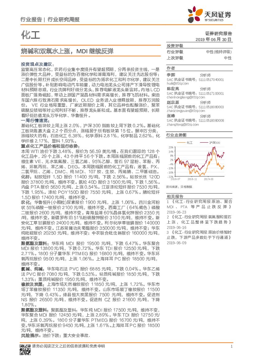 天风证券:化工行业研究周报:烧碱和双氧水上涨,MDI继续反弹.pdf