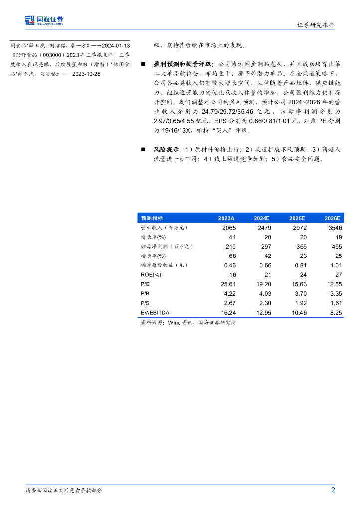 国海证券:劲仔食品(003000)-2024三季报点评:线下渠道增势延续,盈利能力持续改善.pdf