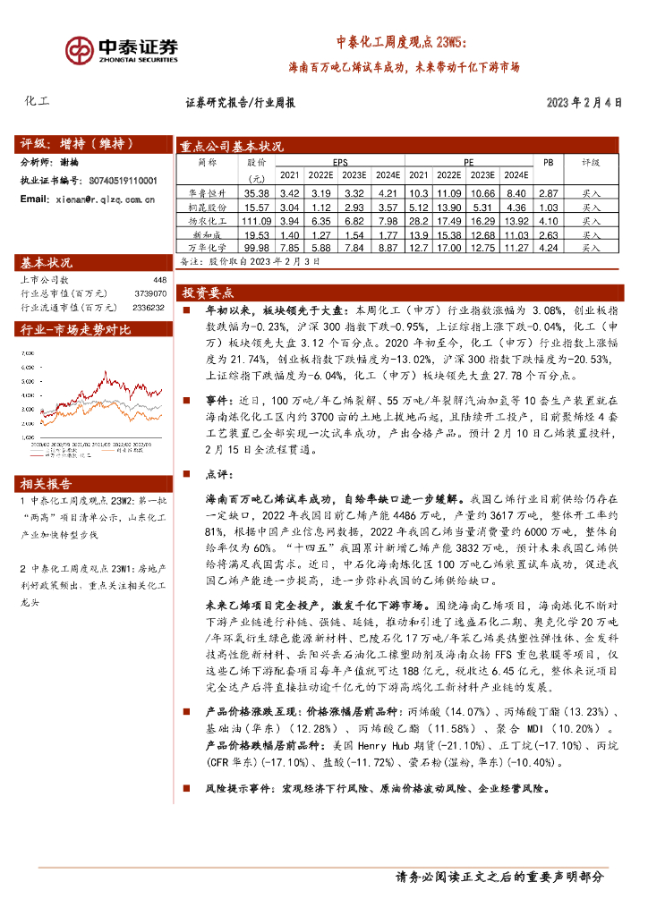 中泰证券:中泰化工周度观点23W5:海南百万吨乙烯试车成功,未来带动千亿下游市场.pdf