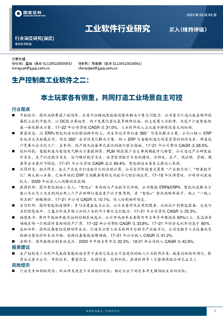 国金证券:生产控制类工业软件之二:本土玩家各有侧重,共同打造工业场景自主可控.pdf