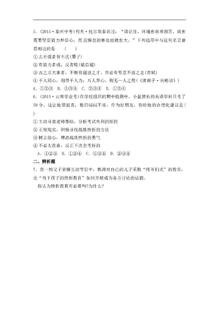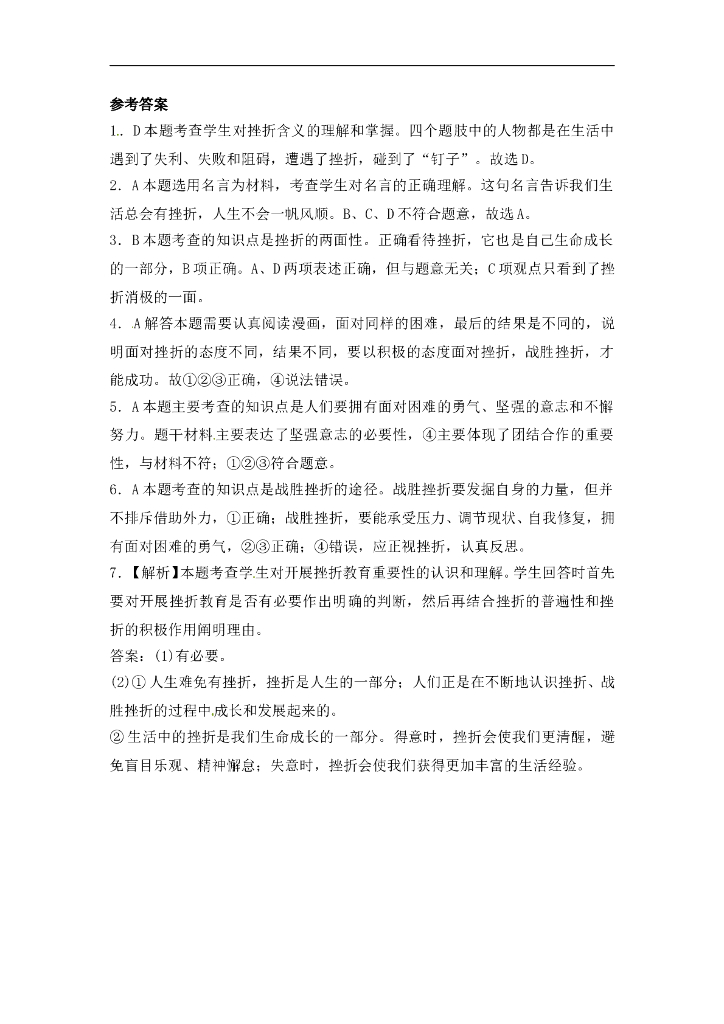 七年级上册 初中道德与法治4.9.2《增强生命的韧性》基础训练.doc