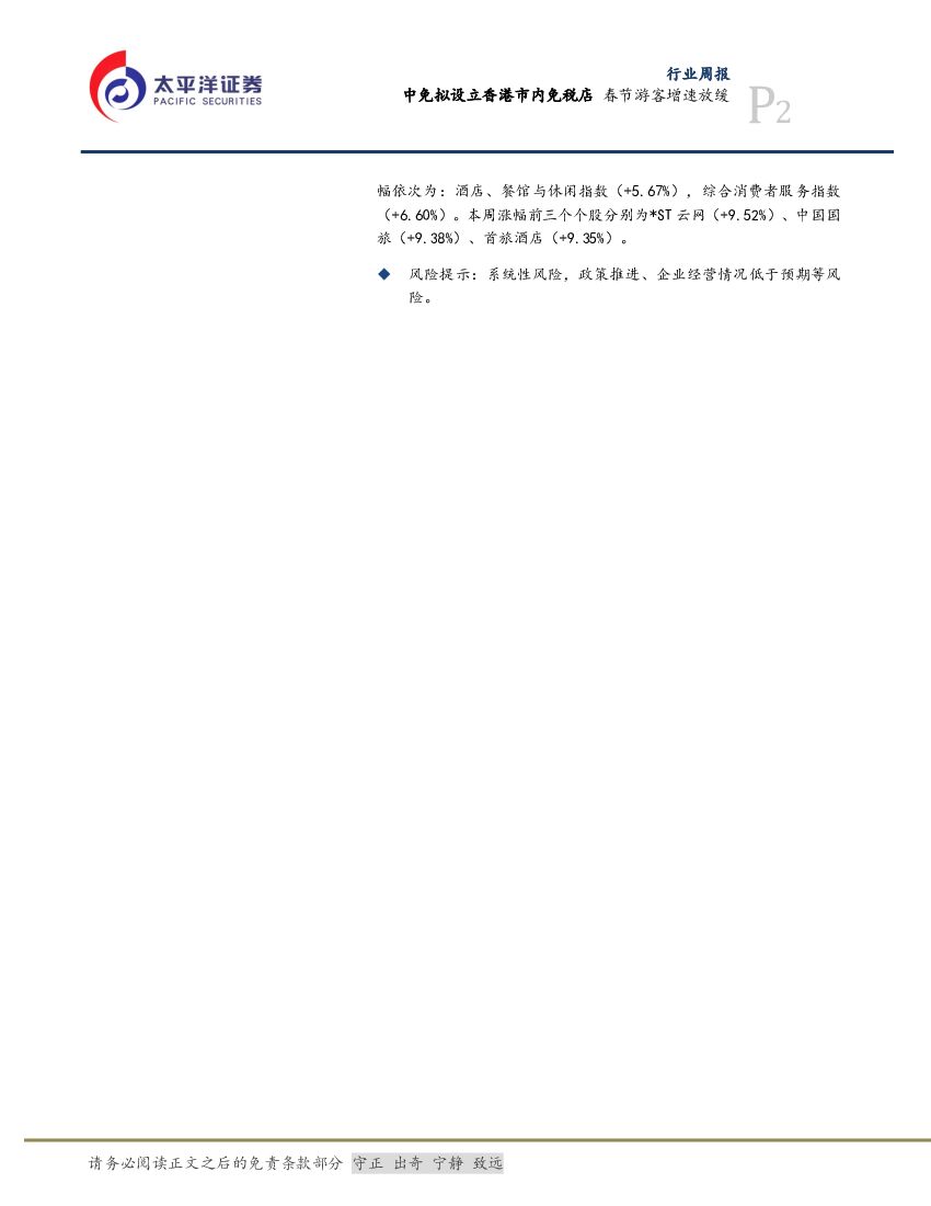 太平洋证券:消费行业周报:中免拟设立香港市内免税店 春节游客增速放缓.pdf