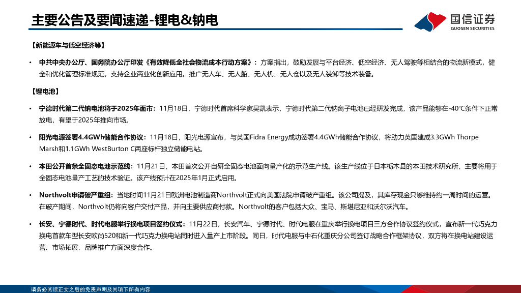 国信证券:锂电产业链双周评(11月第3期):锂电新技术产业化持续加速,宁德时代发布新一代换电站.pdf