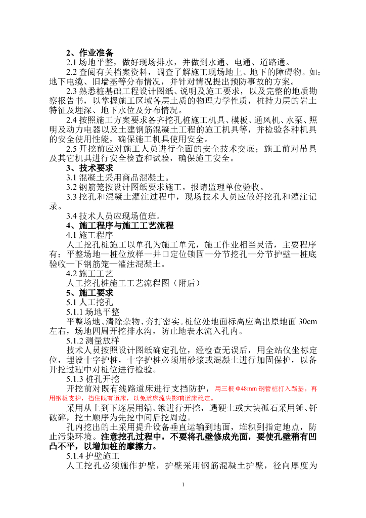 人工挖孔桩施工作业指导书Word版(共11页).doc