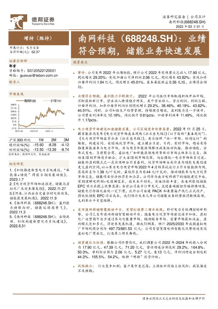 德邦证券:南网科技(688248)-业绩符合预期,储能业务快速发展.pdf