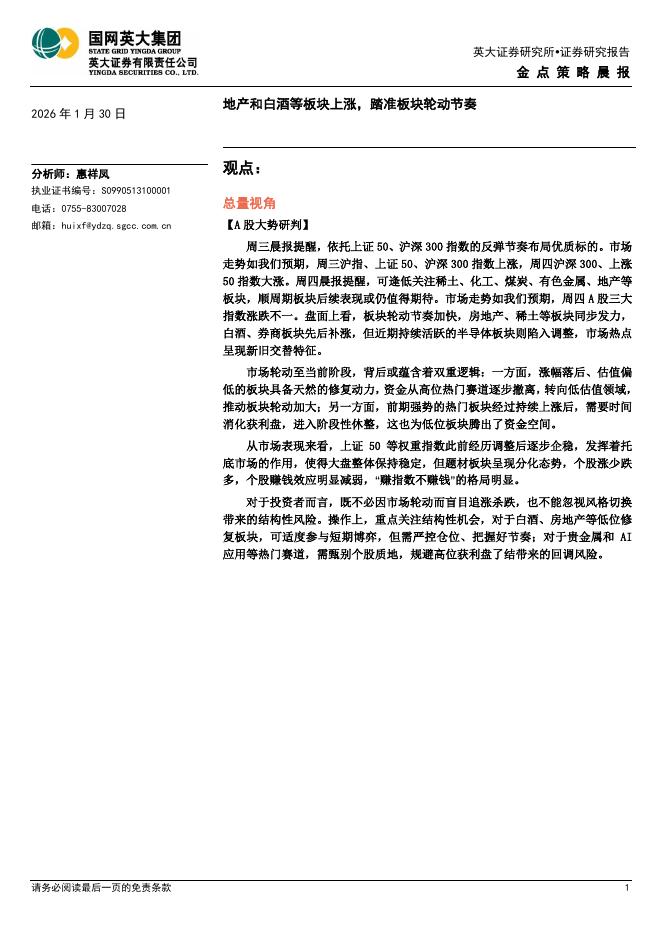 英大证券:金点策略晨报:地产和白酒等板块上涨,踏准板块轮动节奏-260130.pdf