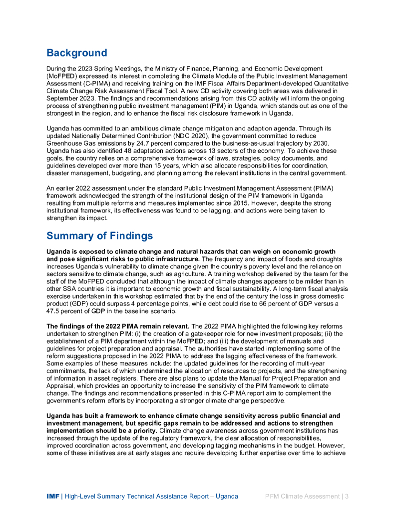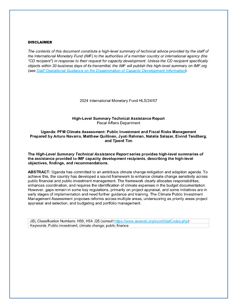 国际货币基金组织:2024年乌干达技术援助报告-PFM气候评估:公共投资和财政风险管理(英文版).pdf