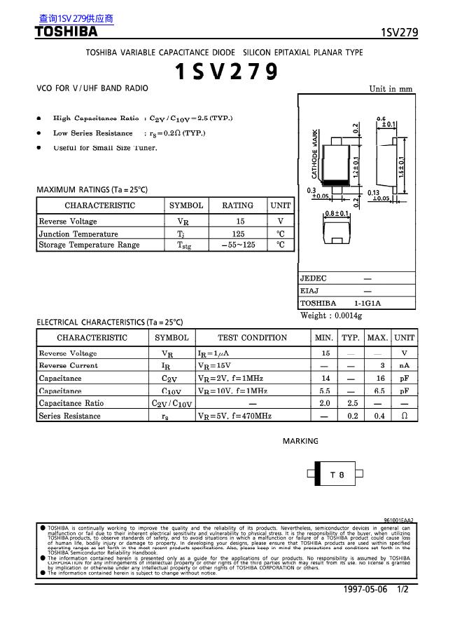TOSHIBA 1SV279 数据手册.pdf