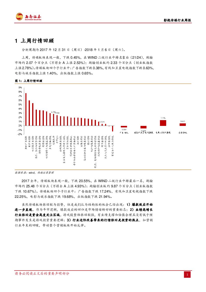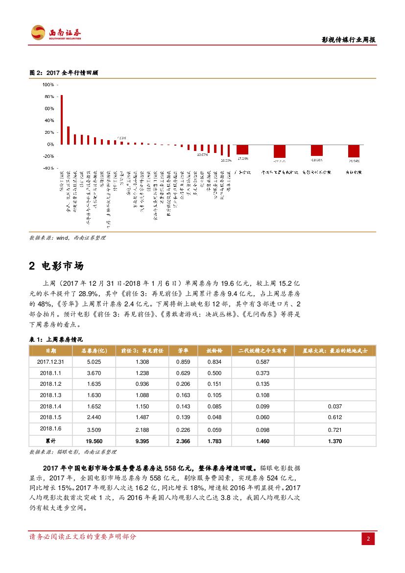 西南证券:影视传媒行业周报:2017盘点:传媒板块降幅最深,电影回归内容为王.pdf