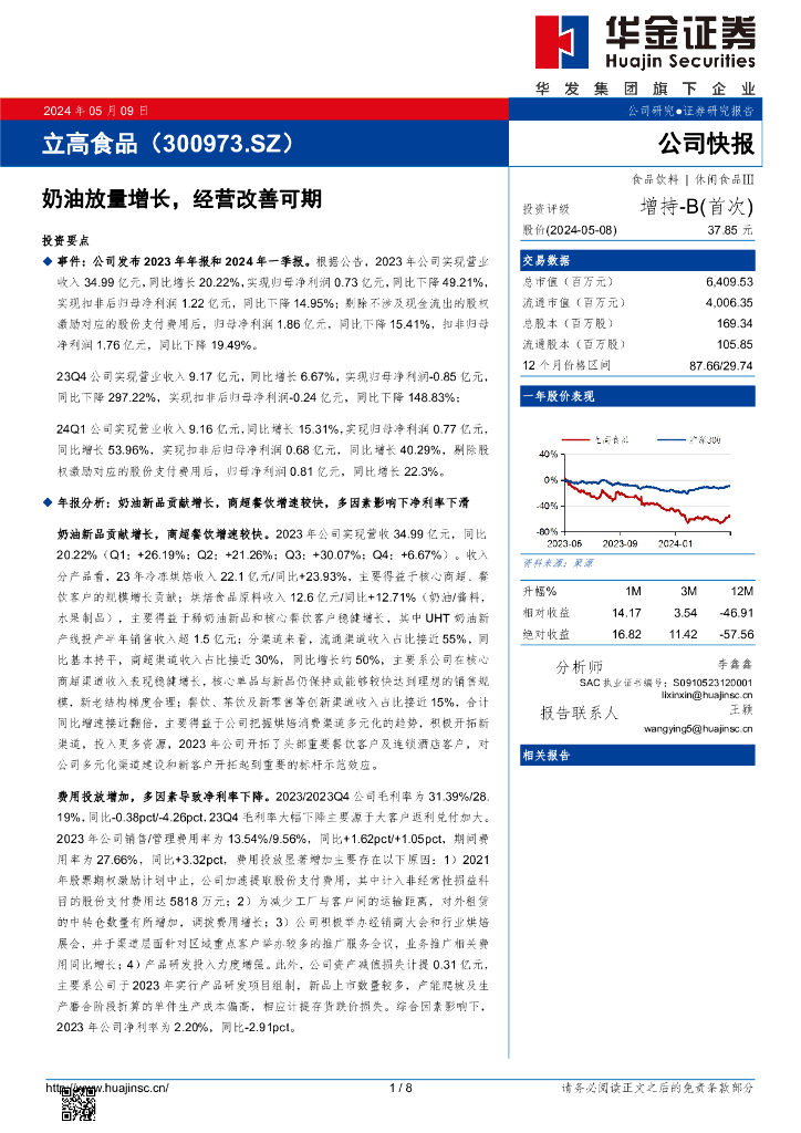 华金证券:立高食品(300973)-奶油放量增长,经营改善可期.pdf