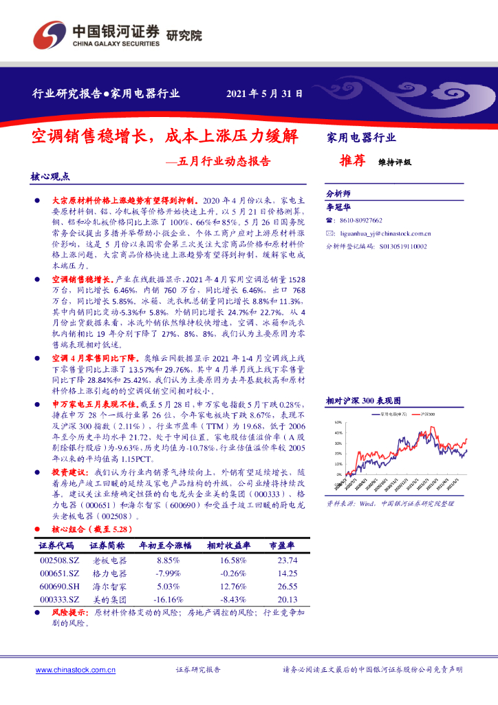中国银河:家用电器行业五月行业动态报告:空调销售稳增长,成本上涨压力缓解.pdf