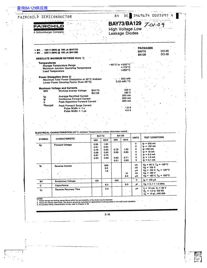 FAIRCHILD BAY73/BA129 数据手册.pdf