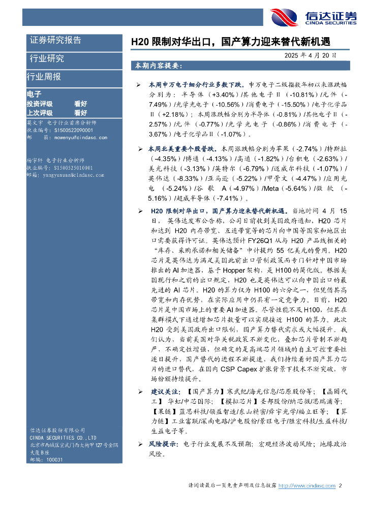 信达证券:H20限制对华出口,国产算力迎来替代新机遇.pdf