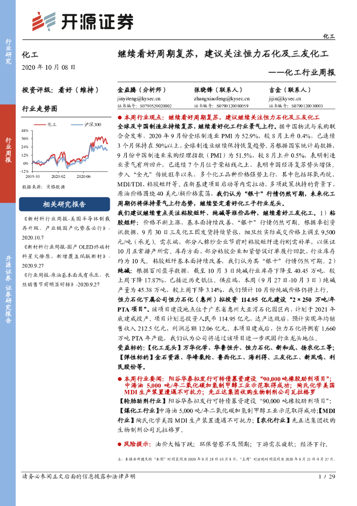 开源证券:化工行业周报:继续看好周期复苏,建议关注恒力石化及三友化工.pdf