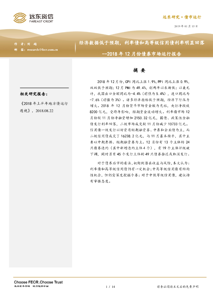远东资信:2018年12月份债券市场运行报告:利率债和高等级信用债利率明显回落.pdf