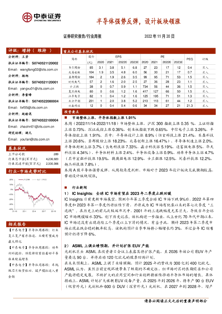 中泰证券:电子行业周报:半导体强势反弹,设计板块领涨.pdf