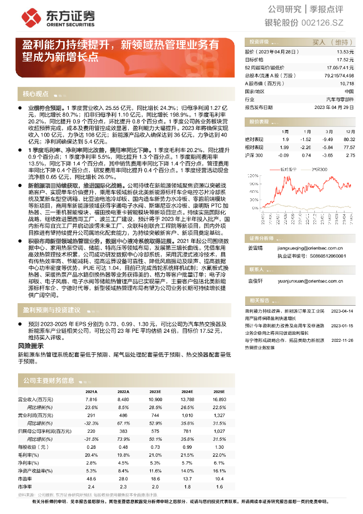 东方证券:银轮股份(002126)-盈利能力持续提升,新领域热管理业务有望成为新增长点.pdf