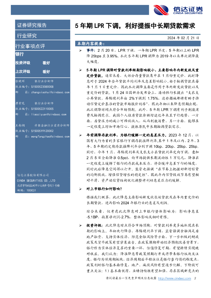 信达证券:银行:5年期LPR下调,利好提振中长期贷款需求.pdf