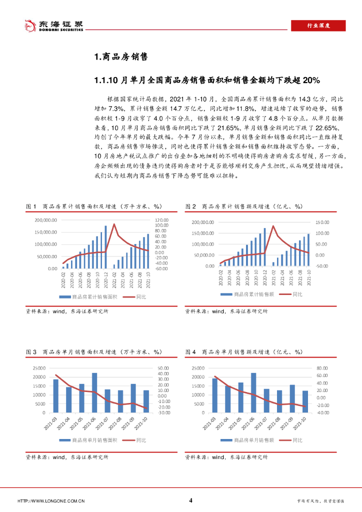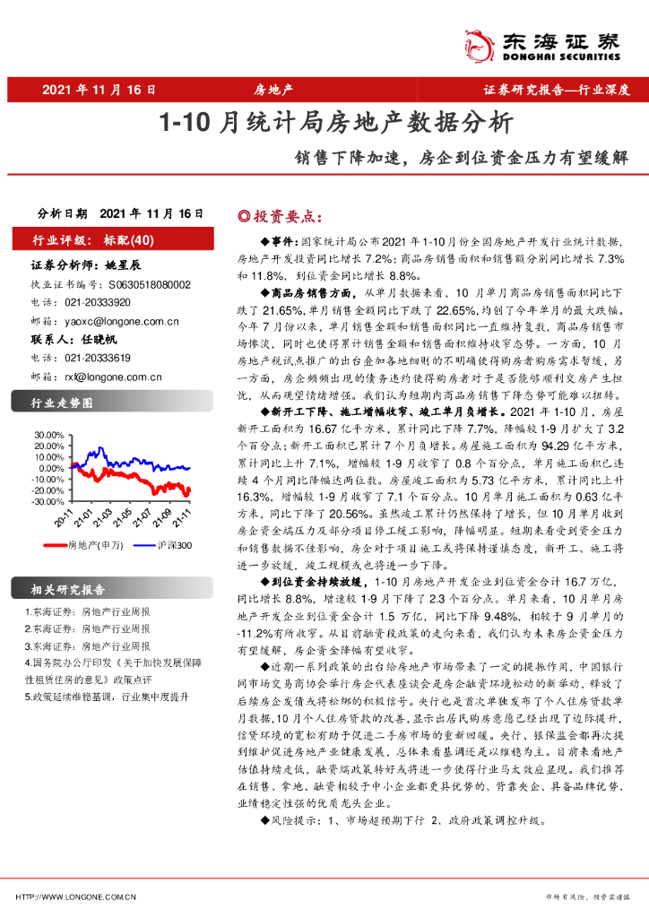 东海证券:1-10月统计局房地产数据分析:销售下降加速,房企到位资金压力有望缓解.pdf