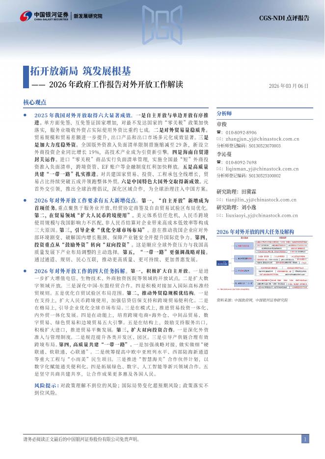 中国银河证券:2026年政府工作报告对外开放工作解读:拓开放新局,筑发展根基.pdf