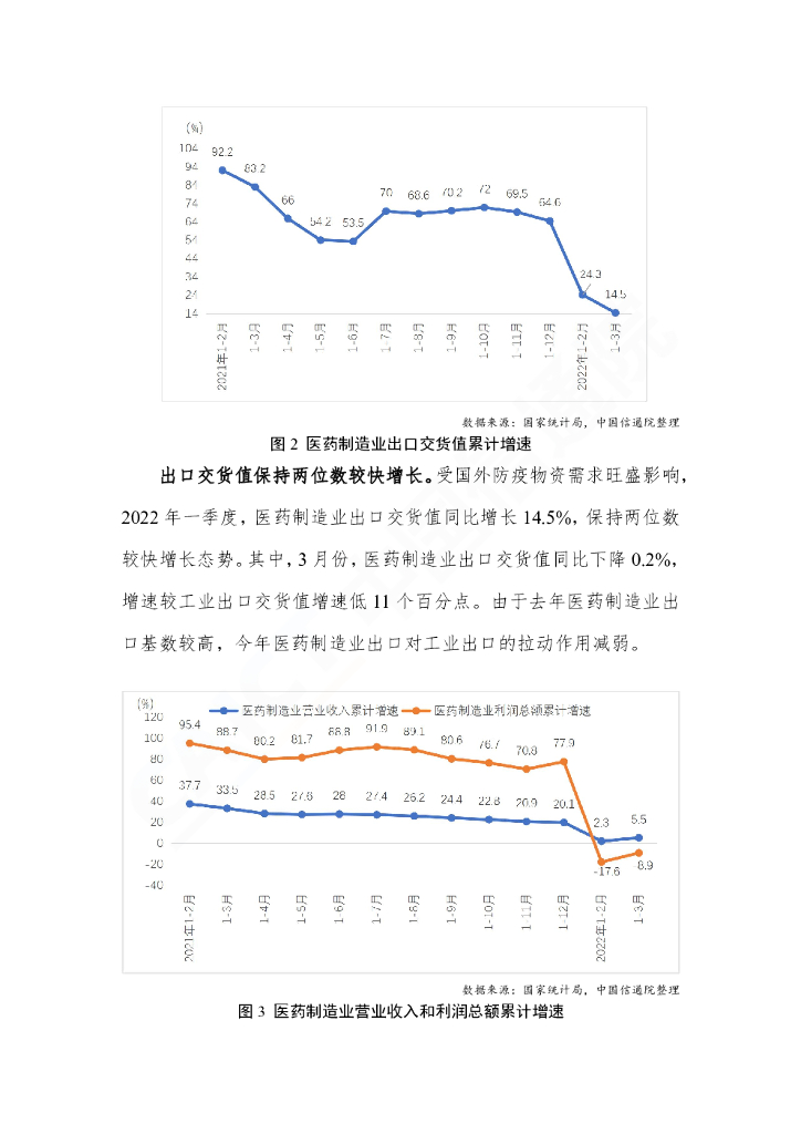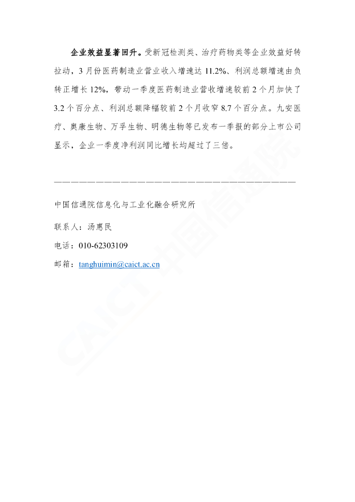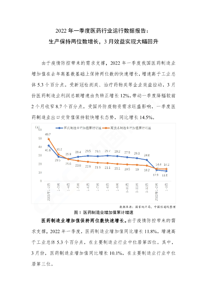 中国信通院:2022年一季度医药行业运行数据报告: 生产保持两位数增长,3月效益实现大幅回升.pdf
