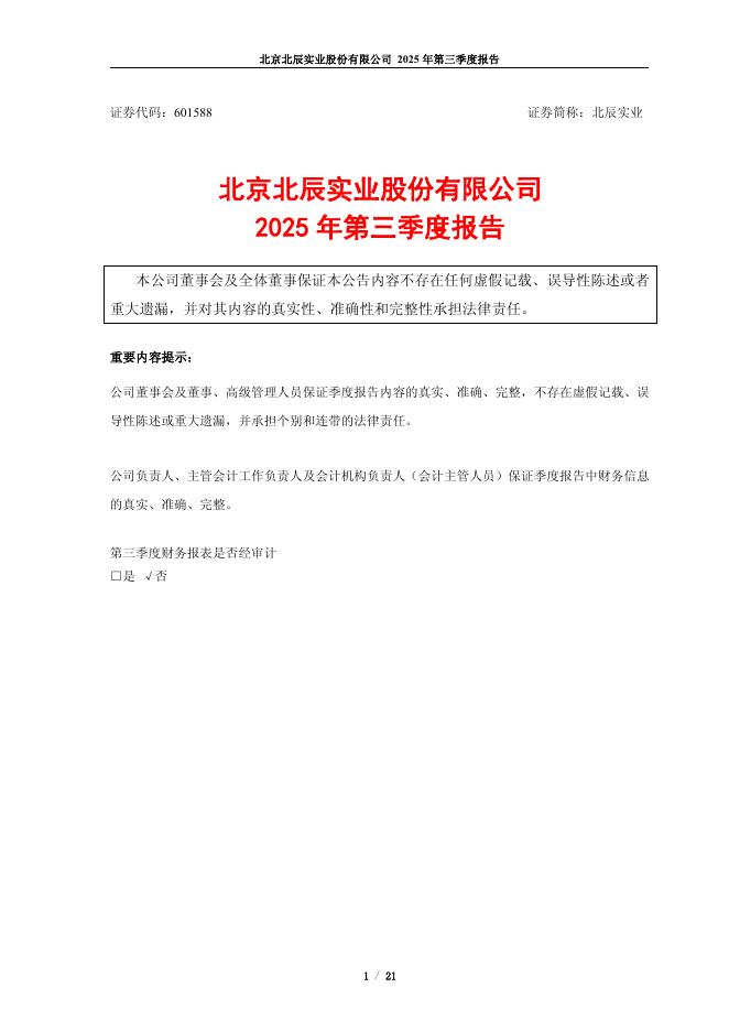 601588-北辰实业:北辰实业2025年第三季度报告.pdf