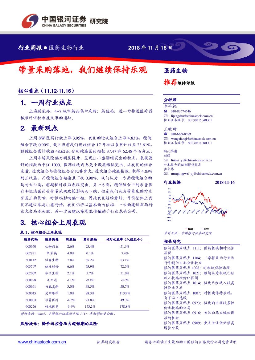 中国银河:医药生物行业周报:带量采购落地,我们继续保持乐观.pdf