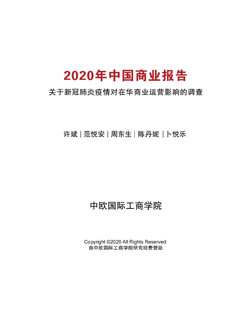 中欧国际工商学院:2020年中国商业报告——关于新冠肺炎疫情对在华商业运营影响的调查.pdf