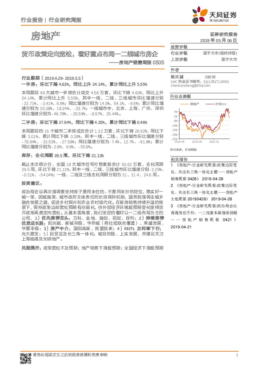 天风证券:房地产销售周报:货币政策定向宽松,看好重点布局一二线城市房企.pdf