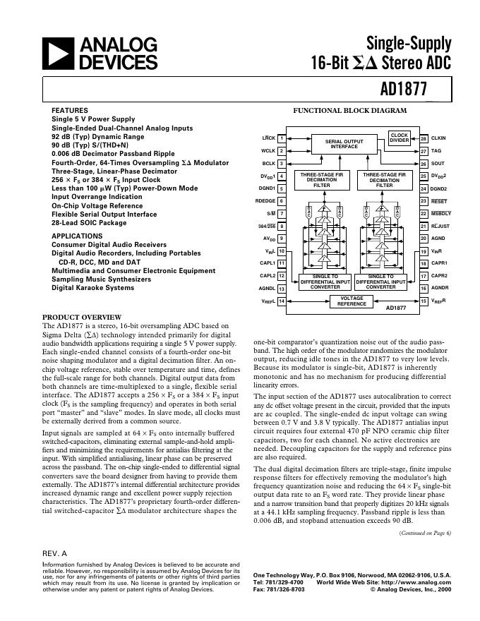 ANALOG DEVICES AD1877 英文产品数据手册.pdf