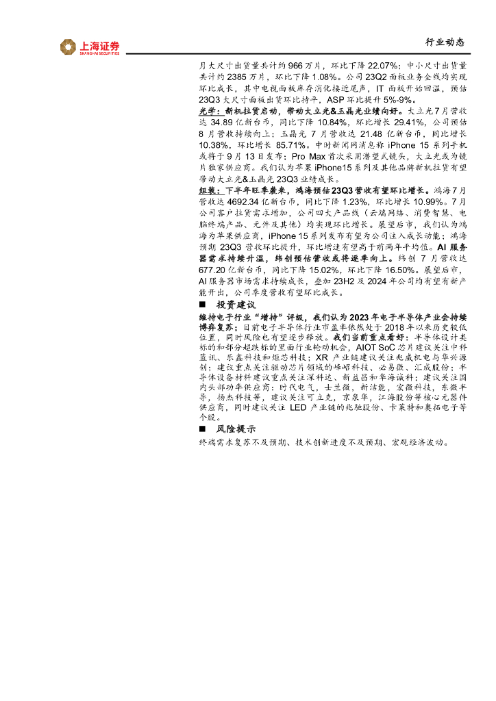 上海证券:电子2023年7月台股营收点评:iPhone15系列或于9月13日发布,有望提振晶圆代工/光学/组装等领域景气度.pdf
