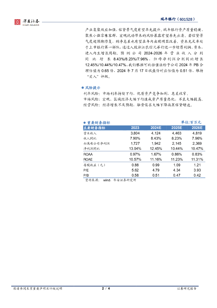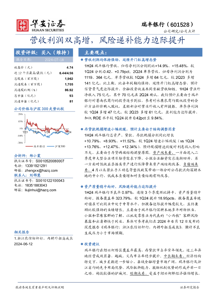 华安证券:瑞丰银行(601528)-营收利润双高增,风险递补能力边际提升.pdf
