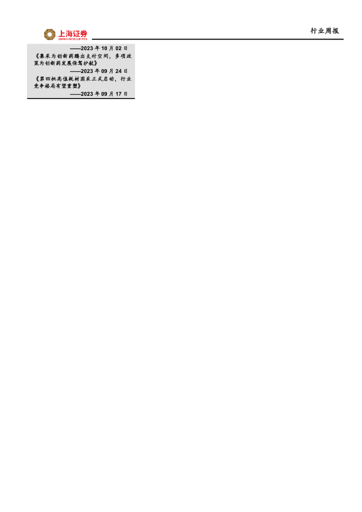 上海证券:医药生物行业周报:持续看好医疗器械行业,当前时点建议关注高端创新和低值耗材领域.pdf