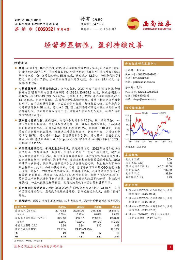 西南证券:苏泊尔(002032)-家用电器:经营彰显韧性,盈利持续改善.pdf