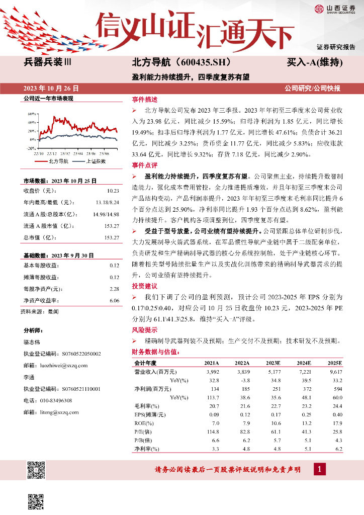 山西证券:北方导航(600435)-盈利能力持续提升,四季度复苏有望.pdf