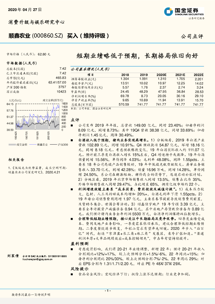 国金证券:顺鑫农业(000860)-短期业绩略低于预期,长期格局依旧向好.pdf