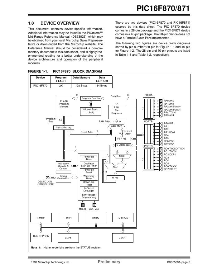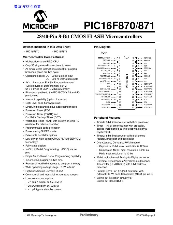 MICROCHIP PIC16F870/871 28/40-Pin 8-Bit CMOS FLASH Microcontrollers 数据手册.pdf