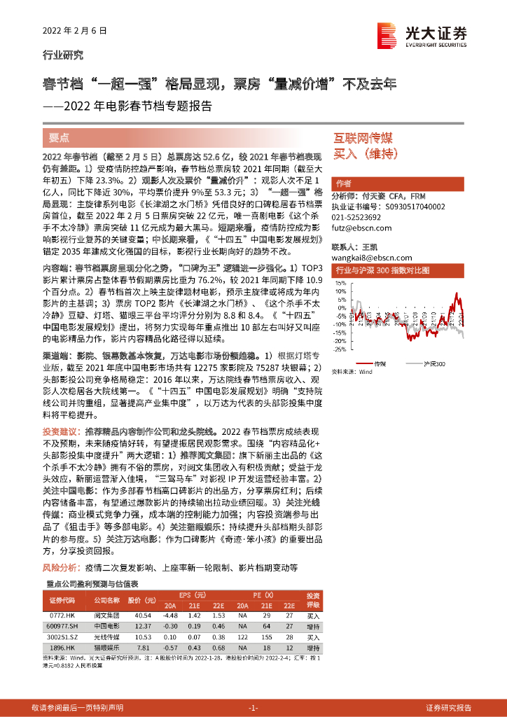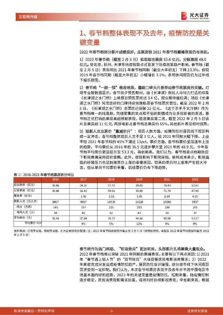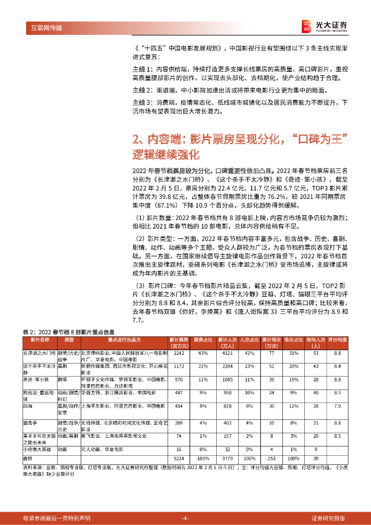 光大证券:2022年电影春节档专题报告:春节档“一超一强”格局显现,票房“量减价增”不及去年.pdf